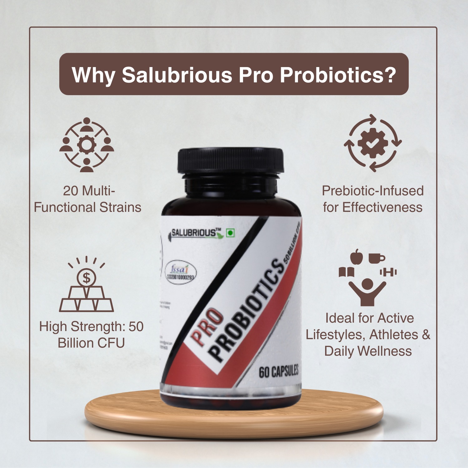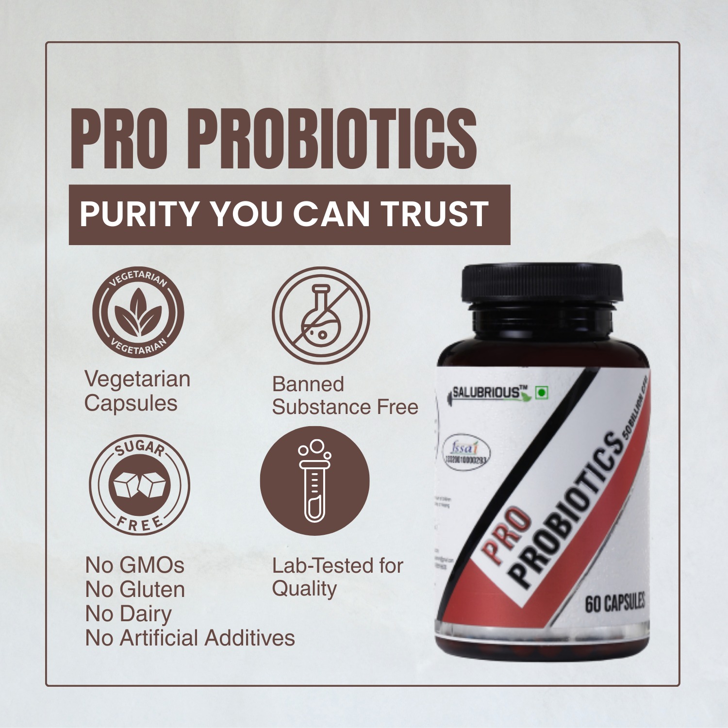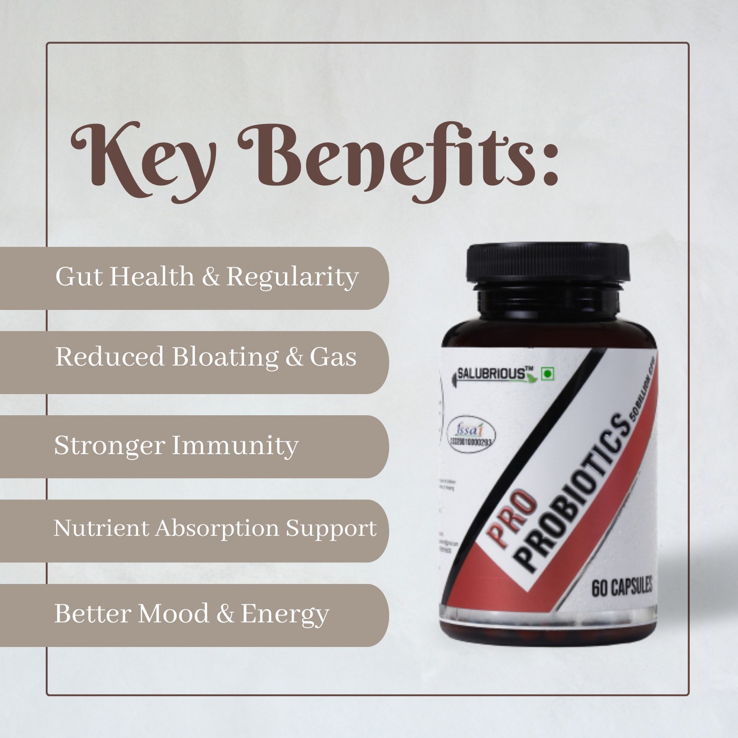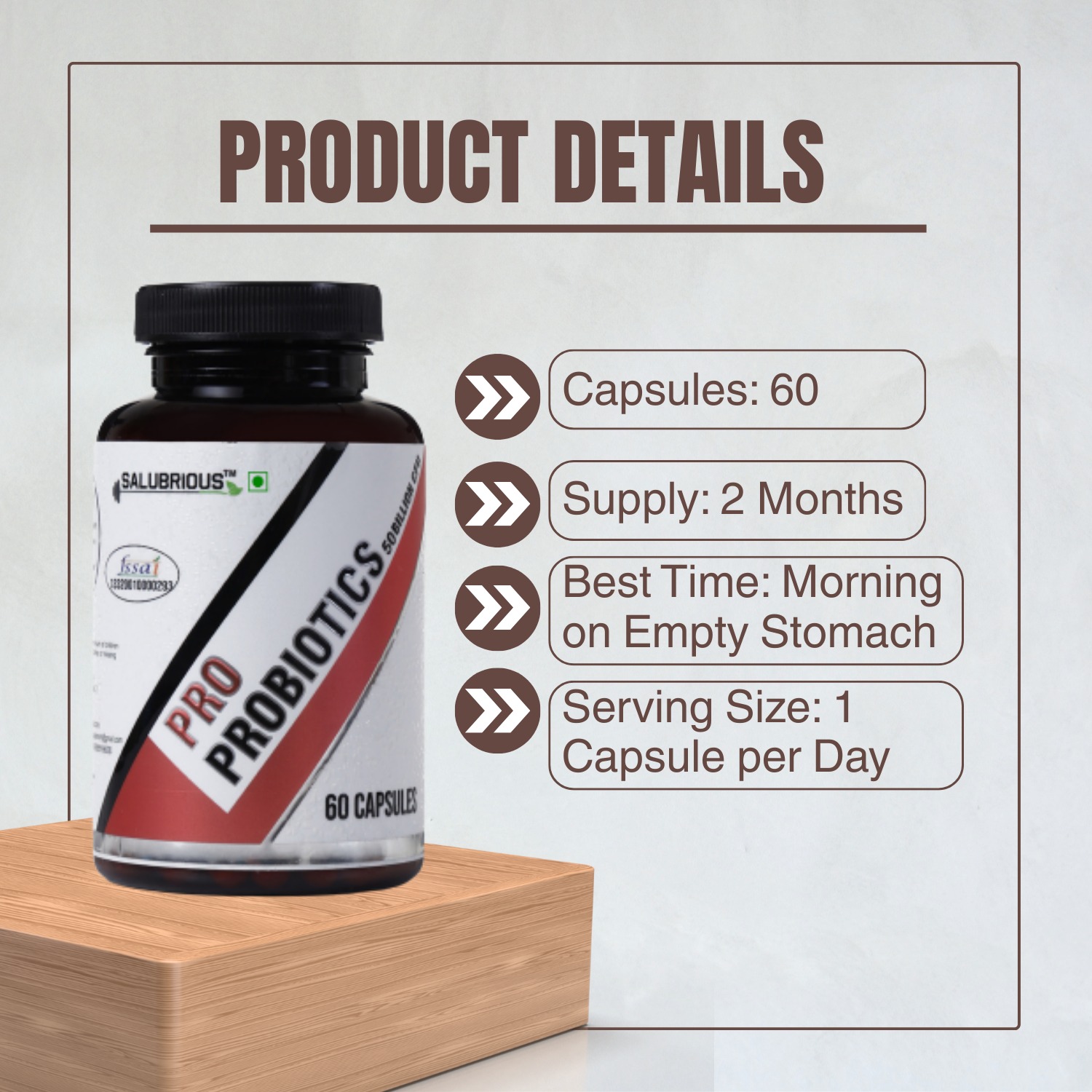Salubrious Probiotics provide digestive support by relieving abdominal discomfort, gas, and bloating. It contains 35 billion CFU of good bacteria for the intestines. It not only helps in the absorption of nutrients but also promotes immunity levels. It maintains gut health and supports healthy digestion.
